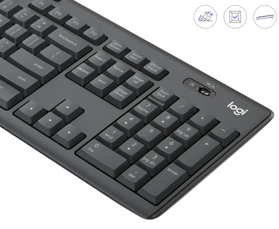 | Bàn Phím và Chuột không dây Logitech MK295 Silent Silent touch Bàn phím và chuột đã được thử nghiệm, cảm giác gõ và tiếng ồn khi nhấp chuột giảm hơn 90% so với đời trước có nghĩa là một trải nghiệm làm việc cực kỳ yên tĩnh cho bạn và những người xung quanh bạn. | ![]() |