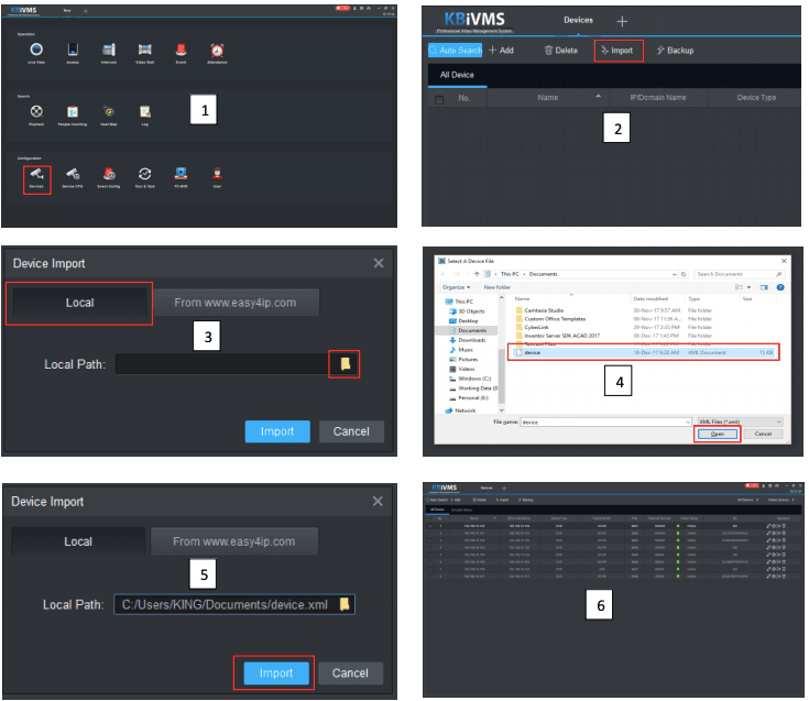 - Bạn tiến hành vào mục Devices -> Import -> Chọn tới file “device.xml” đã backup ở Bước 1 -> Bấm Import -> Xong.