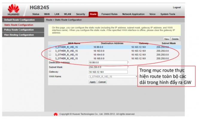 Và routing cả các dải sau: 10.99.0.0/16, 10.163.0.0/16, 10.164.0.0/16, 10.165.0.0/16