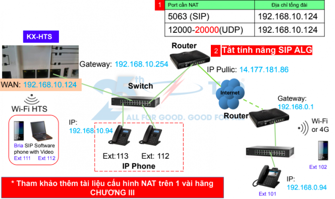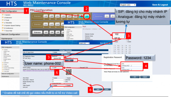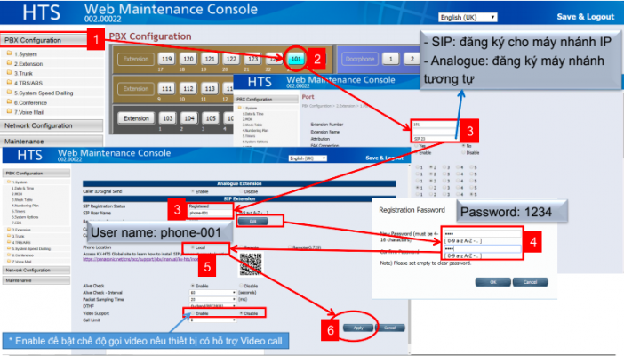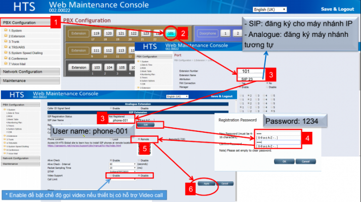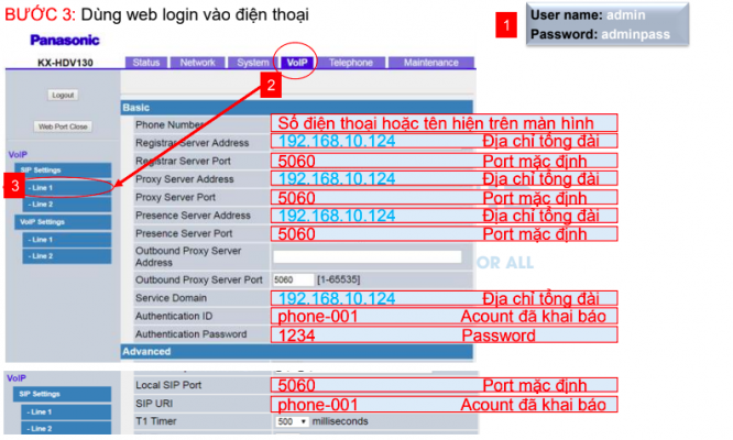 HƯỚNG DẪN CẤU HÌNH MÁY NHÁNH CHUẨN SIP TỔNG ĐÀI HTS824