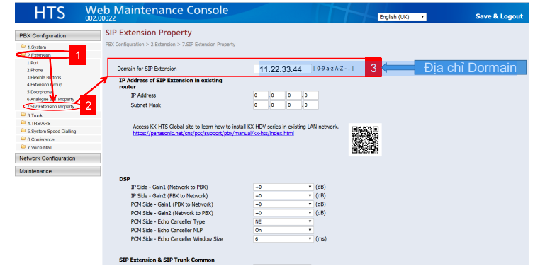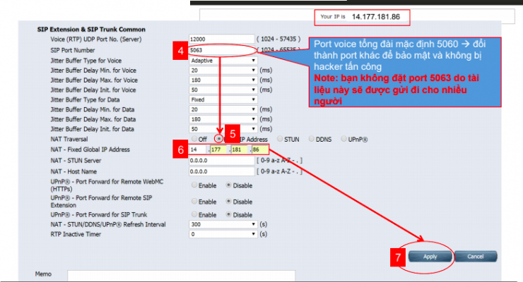 BƯỚC 1.1 Đặt địa chỉ SIP Domain cho tổng đài để tăng bảo mật khi kết nối từ xa: