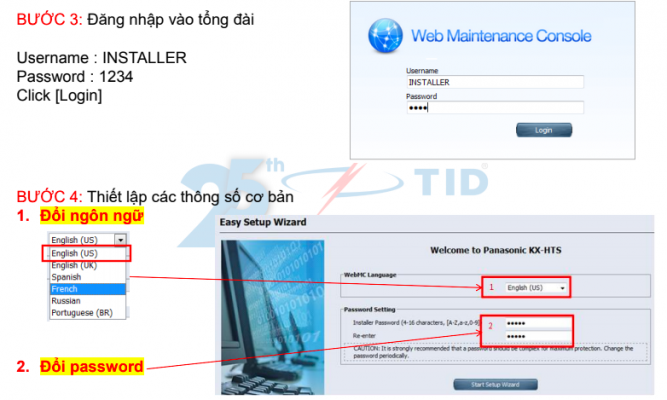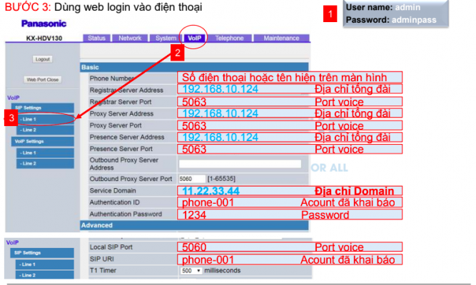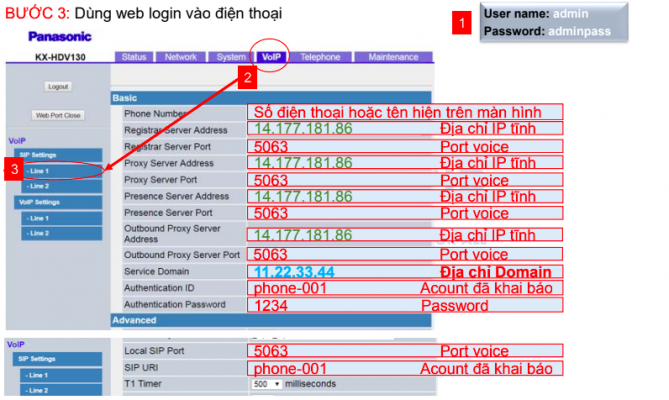 BƯỚC 1: Đăng nhập tổng đài, thay đổi địa chỉ WAN