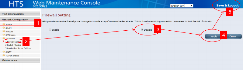 BƯỚC 3: Tắt tường lửa. Khởi động lại tổng đài.