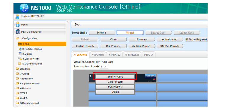 Add card SIPGW để bắt đầu cấu hình. Chọn Port Property