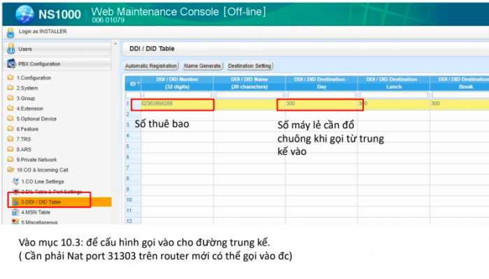 Điền clip cho các máy nhánh. Khai số điện thoại mà nhà mạng cấp vào mục CLIP cho các máy nhánh