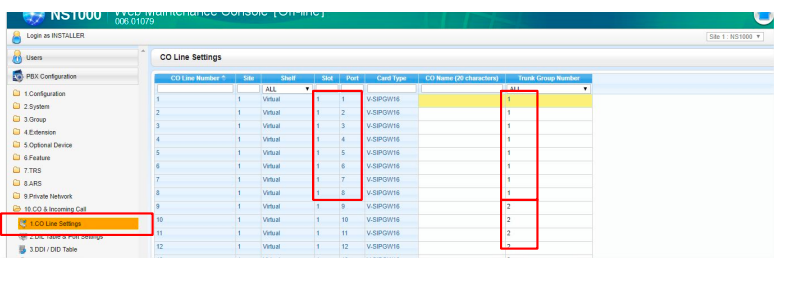Vào mục 10.1 kiểm tra xem đường trung kế đang khai ở trunk group mấy. Vị trí các trung kế ở