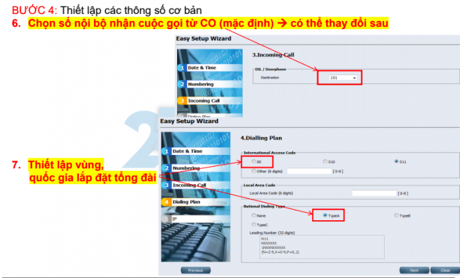 BƯỚC 7: Khai báo số chủ luồn trung kế gọi ra trên máy nhánh
