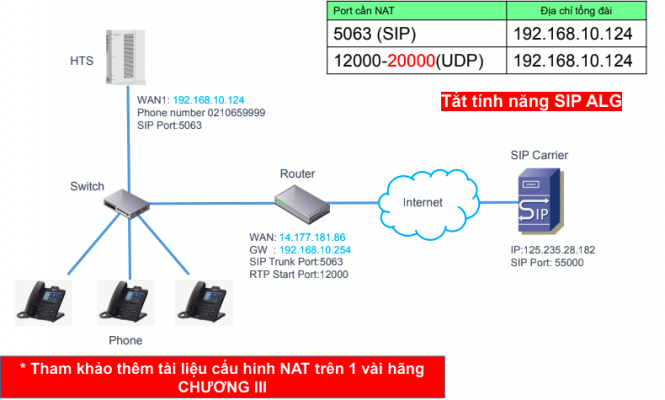 HƯỚNG DẪN CẤU HÌNH TRUNG KẾ CHUẨN SIP TỔNG ĐÀI HTS824