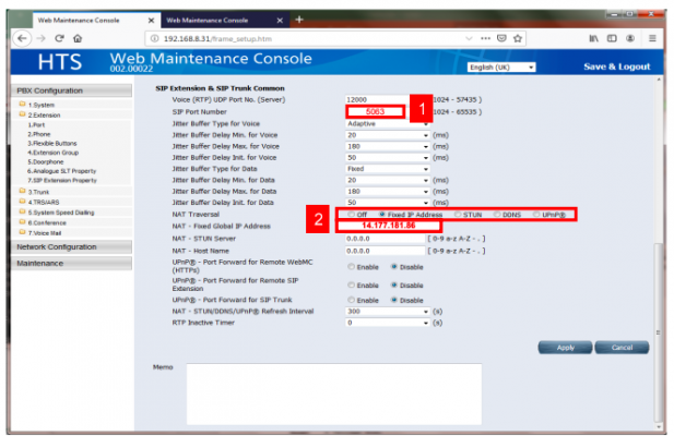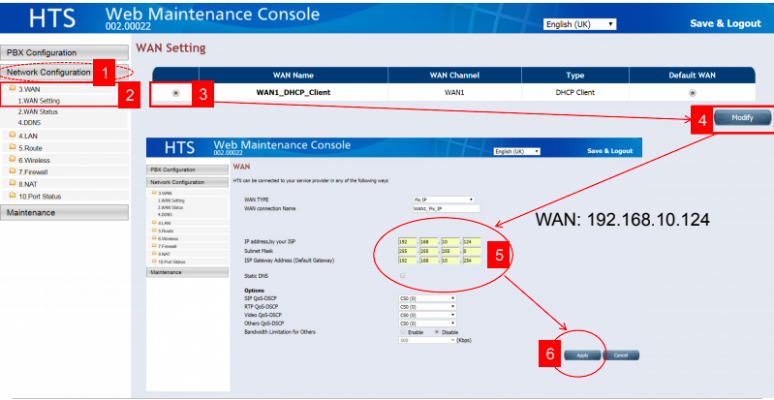 BƯỚC 1: Đăng nhập tổng đài, thay đổi địa chỉ WAN