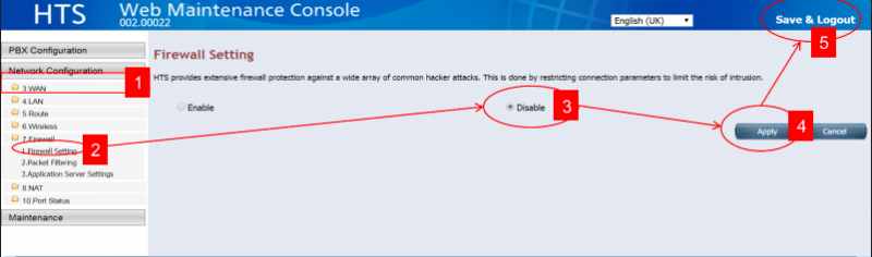 BƯỚC 3: Tắt tường lửa. Khởi động lại tổng đài.