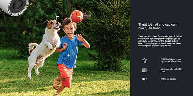 - Tích hợp AI thông minh: Sản phẩm này được trang bị thuật toán AI tiên tiến giúp phát hiện chuyển động của con người một cách chính xác. Bạn sẽ luôn nhận được thông báo khi có sự kiện quan trọng.
