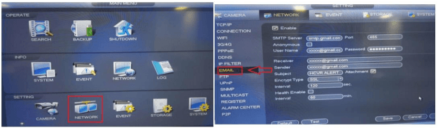 Bước 1: Đăng nhập vào đầu ghi -> Main Menu -> Network -> Email.