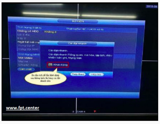 – Khi Đầu ghi hình khởi động, hệ thống chương trình cài đặt nhanh sẽ được bật lên.