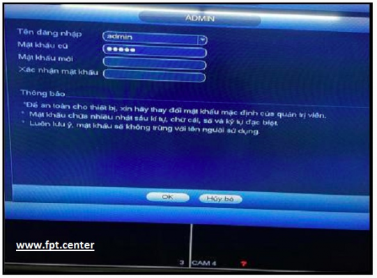 Để đảm bảo an toàn nhất cho toàn hệ thống, chương trình sẽ cho phép đổi mật khẩu bằng bảng thông báo đổi mật khẩu mặc định. Người dùng có thể thay đổi mật khẩu nếu muốn, trường hợp vẫn giữ nguyên mật khẩu mặc định, nhấn ” Hủy Bỏ ” để tiếp tục.