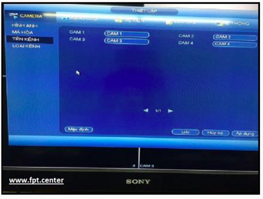 Để điều chỉnh tiêu đề kênh bằng cách vào Menu chính => Thiết lập => Camera => Tên kênh.