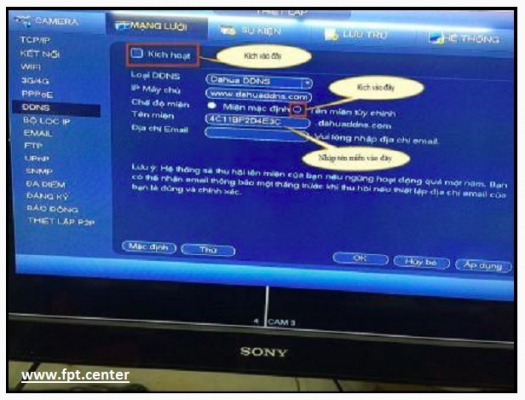 Các bạn check vào ô kích hoạt để sử dụng chức năng DDNS