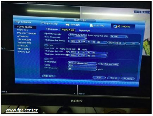 Menu chính => Thiết lập => Hệ thống -> Tổng quan => Ngày & giờ.