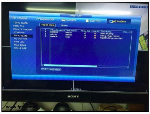 – Tên đăng nhập: 666666. Mật khẩu: 666666 (người dùng với quyền hạn bị hạn chế chỉ có thể giám sát, phát, sao lưu…)