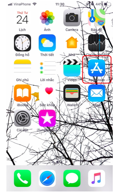 -Chúng ta kích vào biểu tượng Appstore như hình trên.