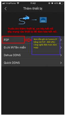 -Thêm thiết bị bằng P2P hoặc SN của thiết bị: