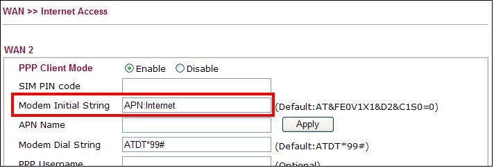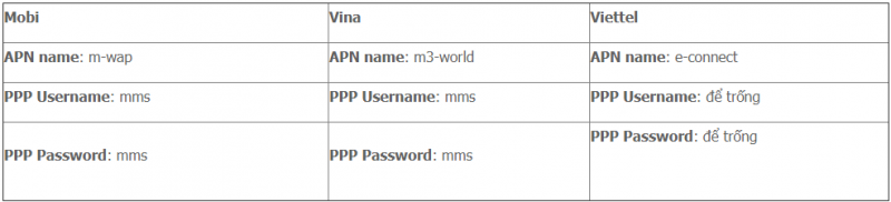Nếu như nhà cung cấp (ISP) xét cho modem chuỗi kí tự mặc định không phải là APN, khi đó chúng ta chỉ có thể gắn vào modem chuỗi kí tự mặc định (ie:AT+CGDCONT=1,”IP”,”internet”) thay cho APN.