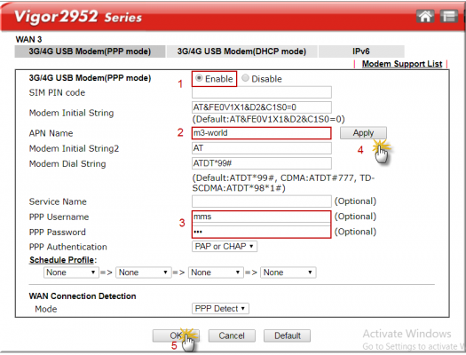 A: Cấu hình USB 3G cho Vigor2910, Vigor2820