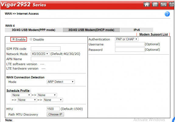 2. Kích hoạt wan USB 3G/4G ở chế độ DHCP mode