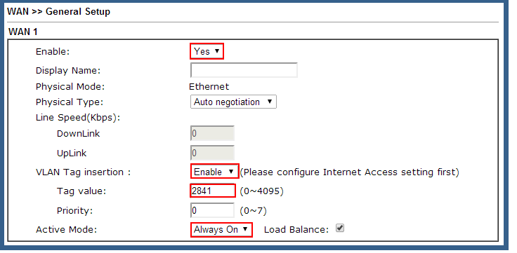 – Tag value : 2841 (Vlan ID của Internet – hỏi nhà cung cấp internet)