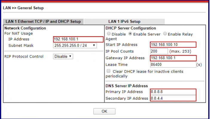 – IP Address : Địa chỉ IP LAN của Vigor – Bạn có thể thay đổi cho phù hợp với mạng LAN hiện tại là 192.168.100.1