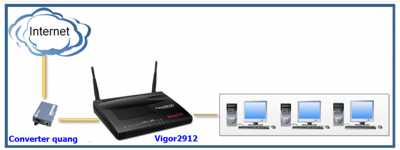 – Nối cáp mạng từ converter quang vào cổng W1 trên Vigor2912