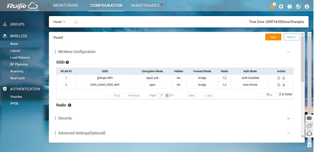 + Save để lưu cấu hình và kiểm tra thành quả, sau khi cấu hình được Ruijie Cloud tải về AP,