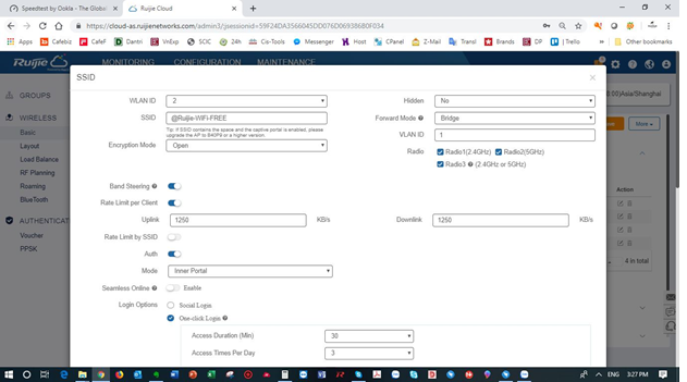 Tạo SSID và cấu hình quảng bá trên WIFI của Ruijie