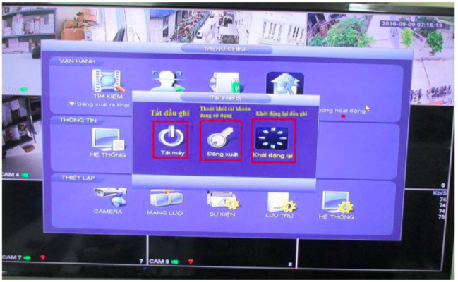 Đăng xuất : – Từ màn hình hiển thị kênh bạn Click chuột phải -> Menu Chính -> Tắt Thiết Bị
