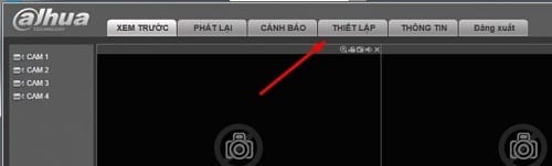Bước 3: Nếu các bạn đăng nhập đúng user và mật khẩu của đầu camera nó sẽ đưa các bạn ngay đến giao diện chính của camera, có rất nhiều mục ở đây nhưng chúng ta sẽ chọn vào mục Thiết lập để thiết lập mật khẩu lại cho camera dahua của bạn.