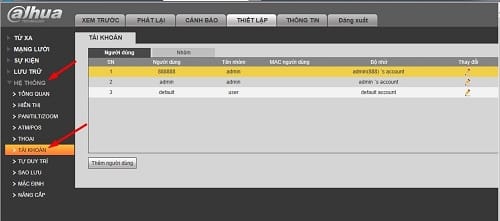 * Nếu thấy có tài khoản nào lại mà chúng ta không dùng mình khuyên các bạn xóa luôn tài khoản đó cho bảo mật. Các camera có phần mềm từ năm 2018 thông thường chỉ có một tài khoản duy nhất đó là admin.