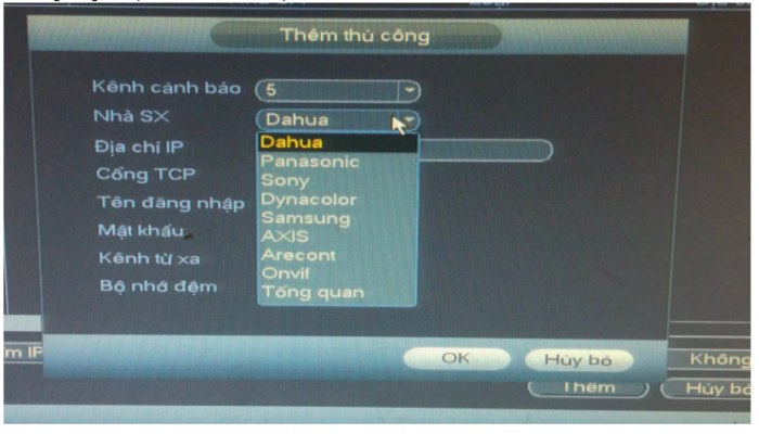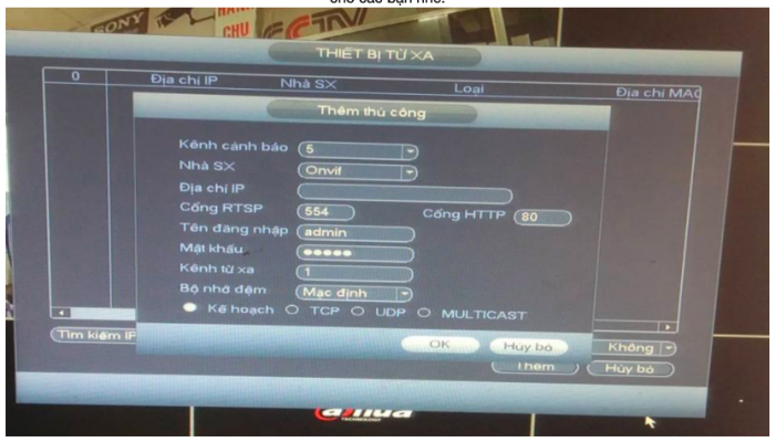 Trường hợp gán add thêm camera IP ngoại mạng, hoặc camera IP hãng khác thì chúng ta click vào mục ” Thêm thủ công” và giao diện màn hình sẽ hiển thị như sau: