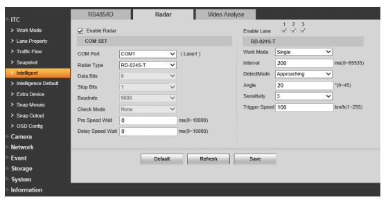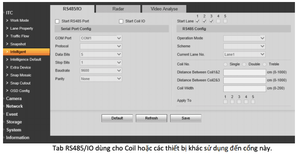 Lưu ý: Khi sử dụng Radar thì phần RS485/IO sẽ không hoạt động, tức là chỉ có 1