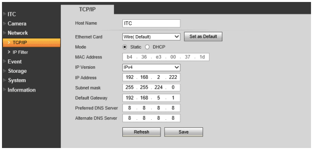 Cài đặt mạng cho camera. Camera có 2 card mạng, ta có thể dùng 1 trong 2 cổng để kết nối với hệ thống mạng.