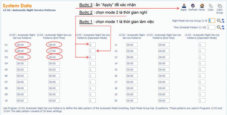 – Chọn Mode thời gian : Lệnh 12-02