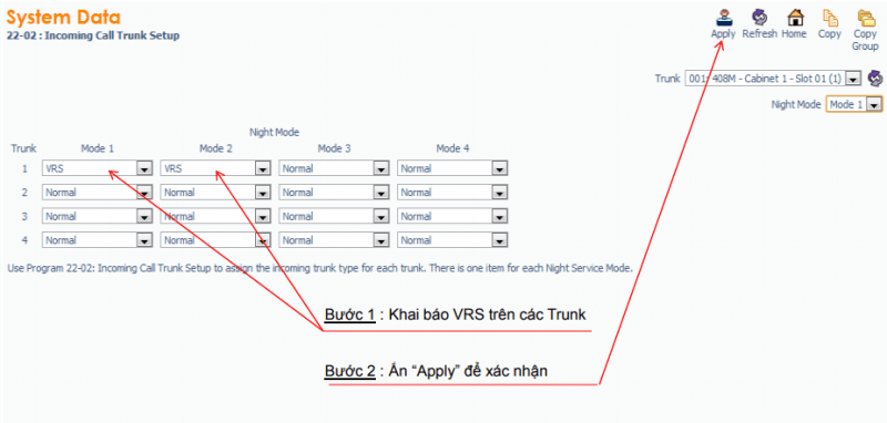 Gắn trung kế hướng tới VRS : Lệnh 22-01