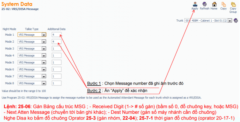 Gắn message ghi âm trước đó vào VRS Message : Lệnh 25-02