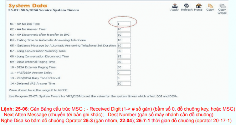Lệnh 25-07 thời gian đỗ chuông disa khi không bấm bất kỳ số nào
