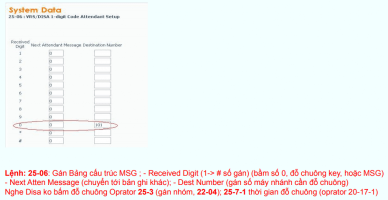 Lệnh 25-06 nghe disa bấm số 0 (0-9,*,#) đỗ chuông ext tương ứng