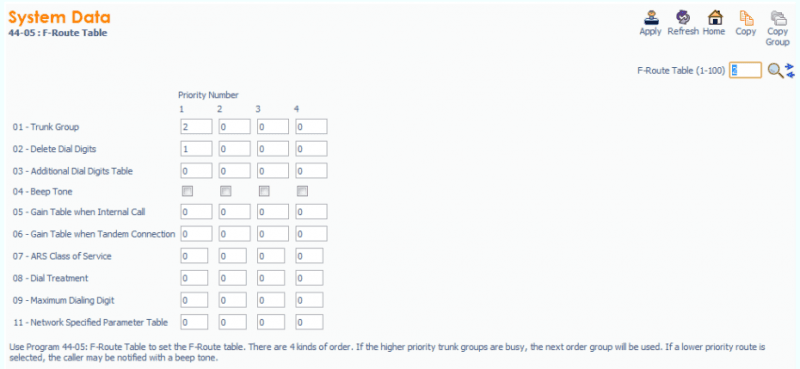 Khai báo đầu số “0” dùng cho tính năng F-Route : Lệnh PRG 11-01