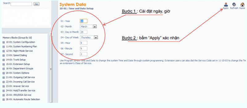 Hướng Dẫn Lập Trình Tổng Đài NEC SL1000 PC : Cài đặt ngày, giờ cho Tổng đài