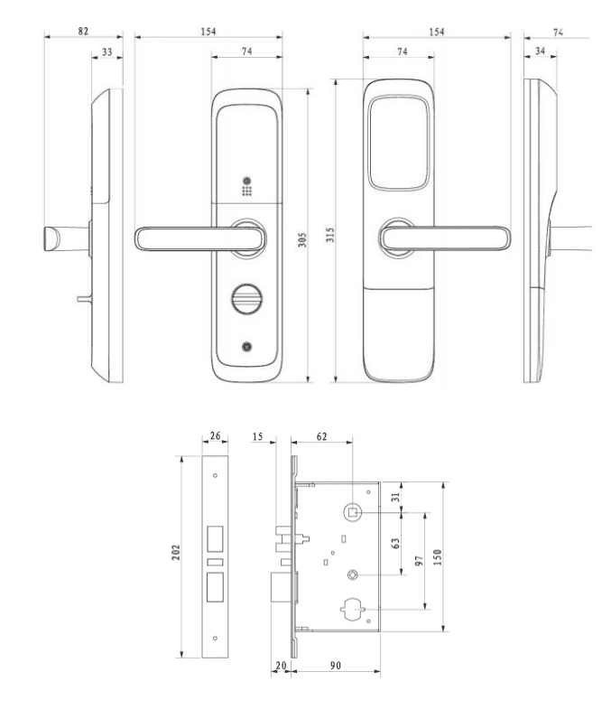 •  Hướng vặn để mở khóa tùy thuộc vào hướng mà bạn lắp trên cửa.