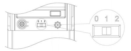 Mở nắp pin (mặt trong) bạn sẽ thấy nút gạt âm lượng. Có 3 nấc để chọn: