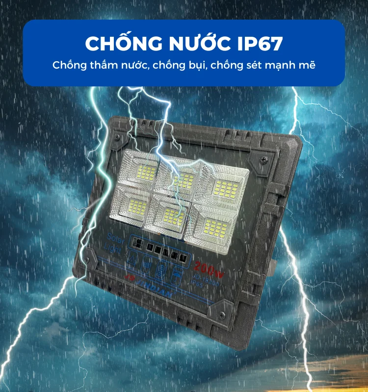 Sản phẩm được thiết kế để hoạt động trong mọi điều kiện thời tiết. Đèn pha có khả năng tự động bật/tắt theo cảm biến ánh sáng môi trường xung quanh, đảm bảo ánh sáng liên tục và ổn định.