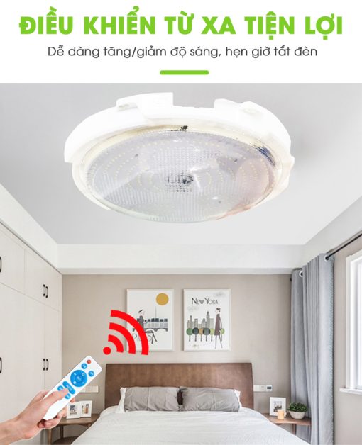Mỗi bộ đèn ốp trần năng lượng mặt trời được trang bị 1 điều khiển từ xa với nhiều tính năng như hẹn giờ, bật – tắt, tăng giảm độ sáng vô cùng tiện lợi cho người dùng.