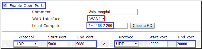 – Local Computer: Địa chỉ IP tổng đài (cái này phải chính xác)